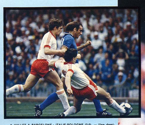 Le 8 juillet, en demi-finale, l’Italie retrouve les Polonais privés de leur stratège Boniek. L’Italie, forte de ses victoires précédentes sur l’Argentine et le Brésil, joue vite et bien et par deux fois, Paolo Rossi envoie les azzurri en finale d’un mondial pour la quatrième fois de leur histoire .